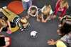 J’utilise différents leviers selon les techniques : jeux, cartes, playmobils, instruments de musique…en fonction du goût et de l’âge de l’enfant. (pâte à modeler, bouchons,…).